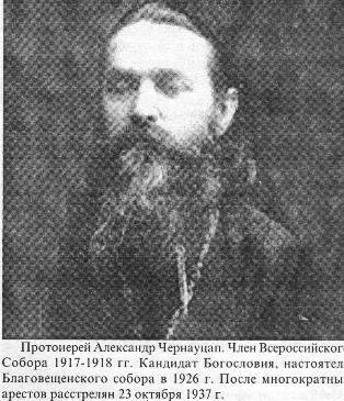 Протоирей Александр Чернауап. Член Собора 1917-18 гг. Настоятель Благовещенского собора в 1926 г. Расстрелян 23 окт. 1937 г.