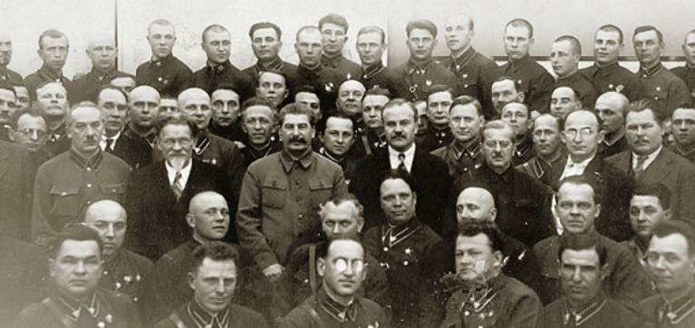 Сталин и члены Политбюро в окружении сотрудников НКВД